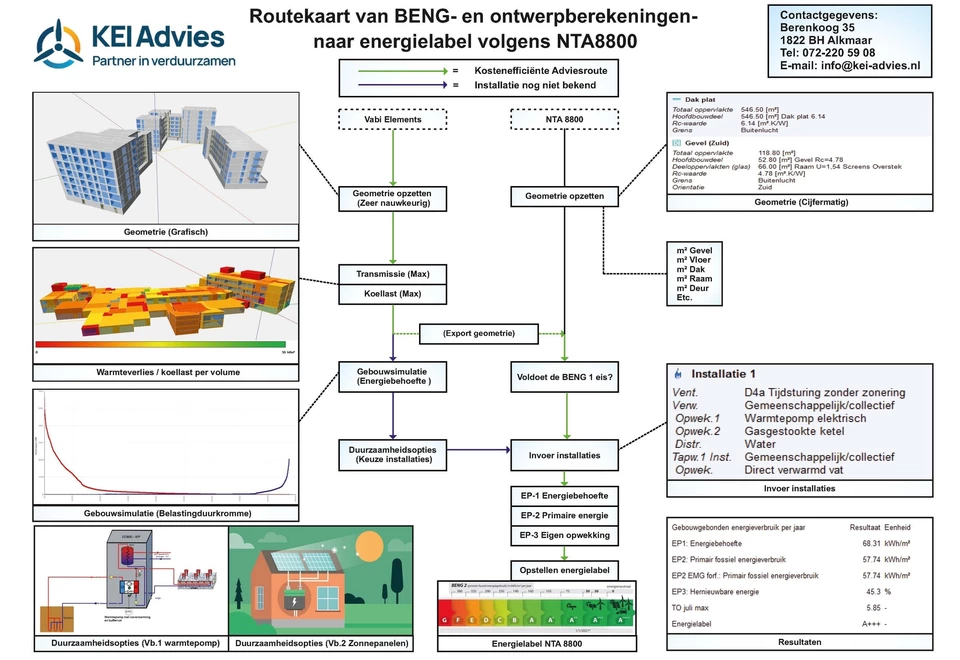 Nieuwbouwprojecten dienen te voldoen aan de BENG-eisen (Bijna EnergieNeutrale Gebouwen). Met een professionele BENG-berekening van KEI Advies weet u zeker dat uw ontwerp voldoet aan de actuele regelgeving en energieprestatie-eisen. De berekening geeft de uitkomst in kWh/m2 voor een BENG-gebouw.